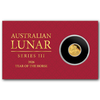 0,5 Gramm Goldmünze Australien 2026 Polierte Platte im Blister - Lunar Serie 3 - Motiv: PFERD