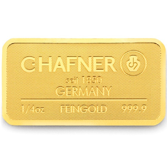 Startseite » GOLDBARREN » C. HAFNER Goldbarren » 1/4 Unze Goldbarren C.HAFNER – Neuware mit Seriennummer, geprägt im Blister, LBMA-zertifiziert