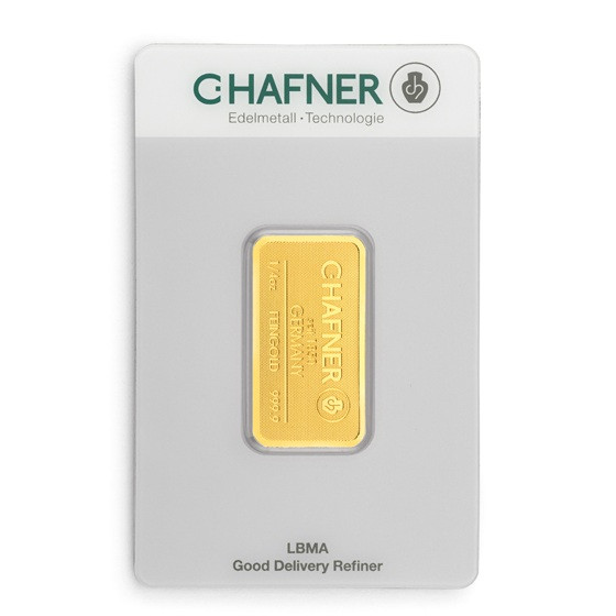 1/4 Unze Goldbarren C.HAFNER – Neuware mit Seriennummer, geprägt im Blister, LBMA-zertifiziert