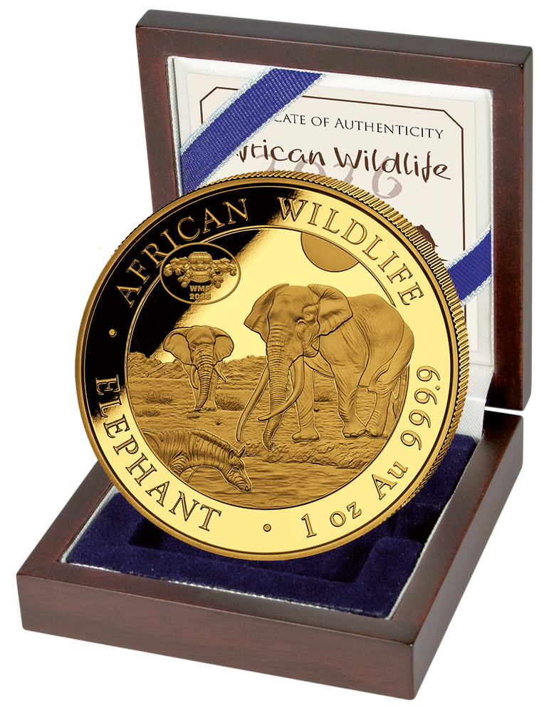 1 Unze Goldmünze Somalia 2026 - Elefant | Privy Mark: World Money Fair Berlin - Motiv: Botanical Garden Privy Mark