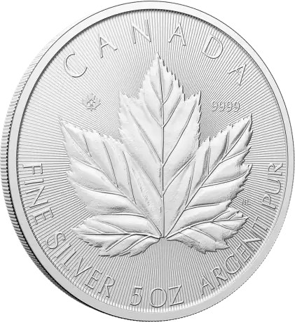 Die 5 Unze Silbermünze Kanada 2026 – Grand Maple Leaf (Blätter in Bewegung / Leaves in Motion) ist eine großformatige Bullionausgabe der renommierten Royal Canadian Mint. Das Motiv interpretiert das weltbekannte Ahornblatt neu und zeigt mehrere dynamisch angeordnete Blätter in einer modernen, bewegten Darstellung. Die Münze besteht aus 999,9/1000 Feinsilber und verfügt über ein Feingewicht von 5 Unzen (155,52 Gramm). Durch das größere Format kommen Details und Prägetiefe besonders wirkungsvoll zur Geltung. Typisch für aktuelle Silberprägungen der Royal Canadian Mint sind die präzise ausgearbeiteten radialen Linien im Hintergrund sowie zusätzliche Sicherheitsmerkmale zur Authentifizierung. Die Wertseite zeigt das offizielle Porträt von Charles III. Mit ihrer hohen Feinheit, dem erweiterten Gewicht und der international etablierten Akzeptanz kanadischer Silberbullionmünzen ergänzt die 5 Unzen Ausgabe die klassische Maple Leaf Produktlinie um eine größere Anlageeinheit.