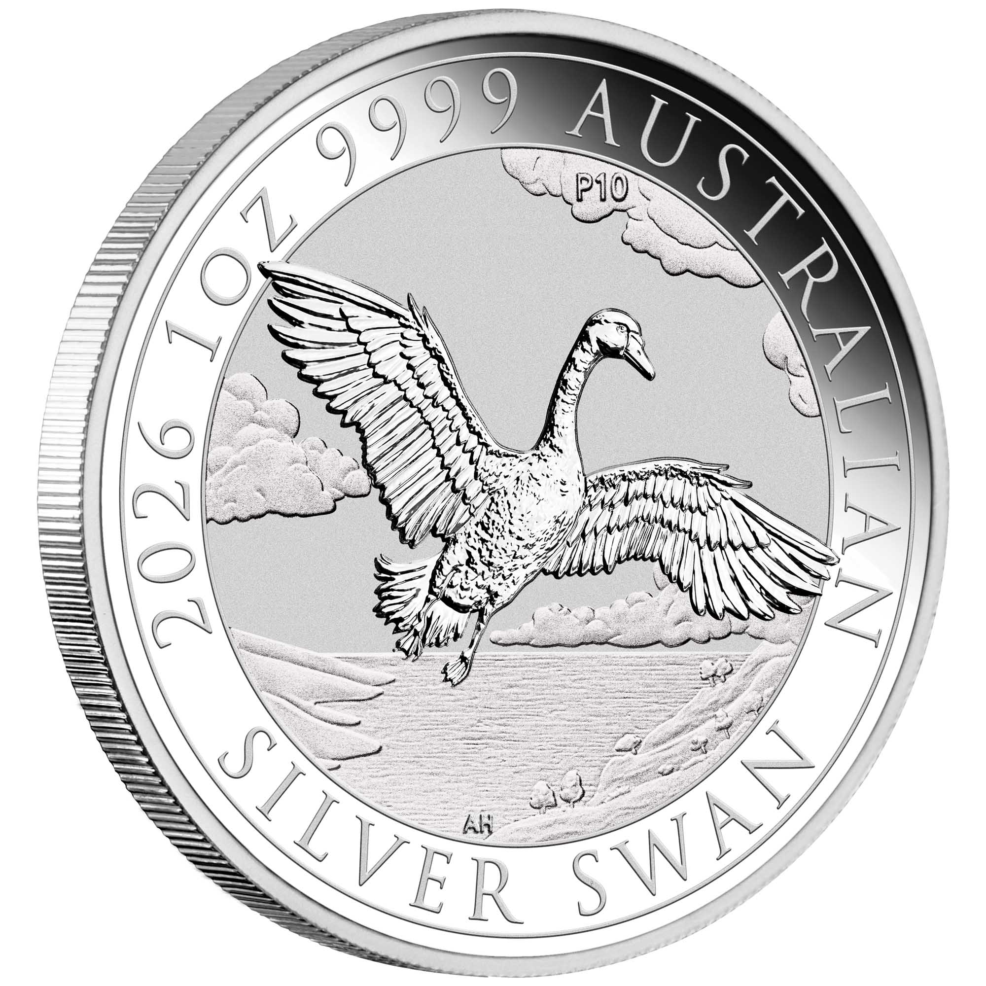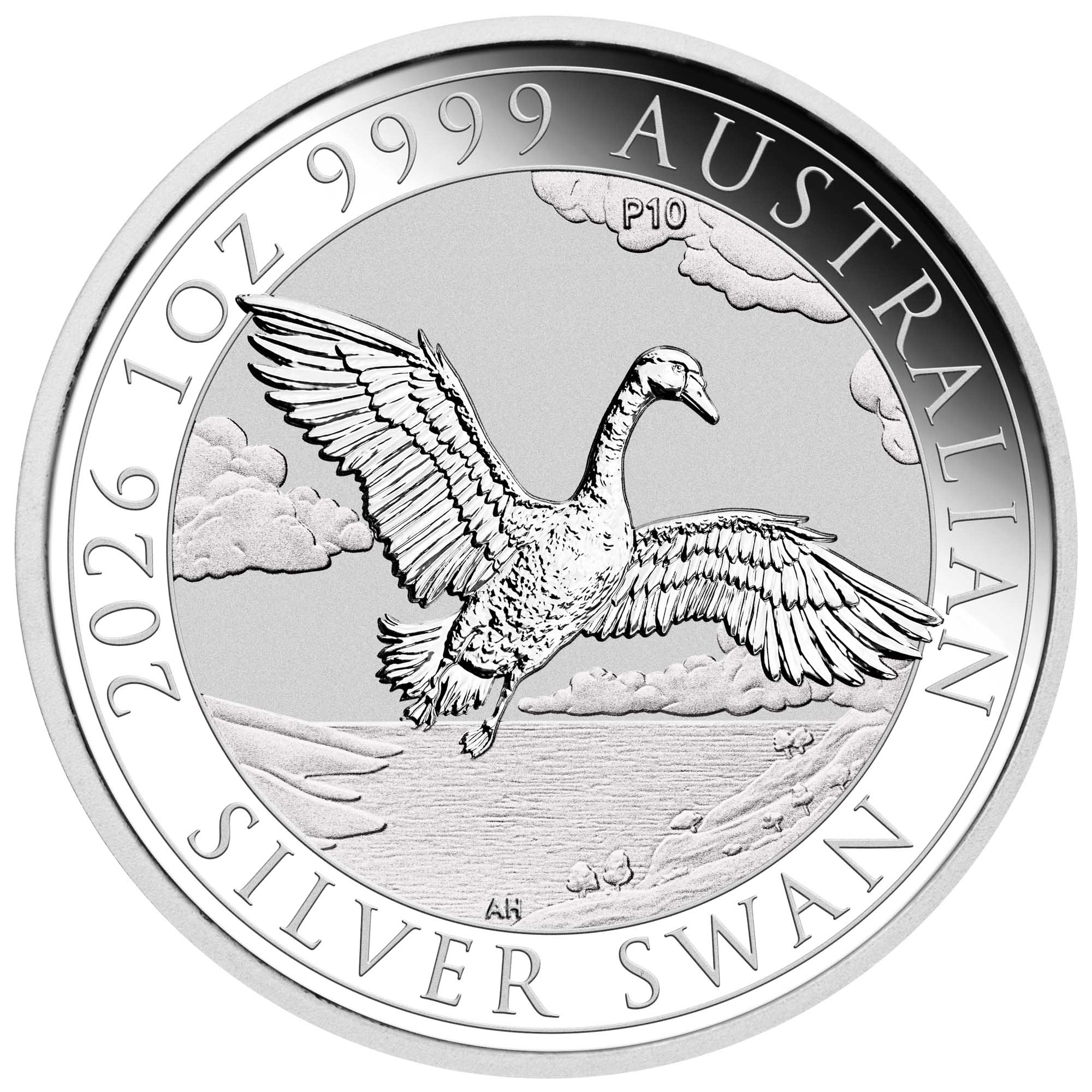 Die 1 Unze Silbermünze Australien 2026 – Der Schwan (The Swan) – 10. Jahrestag ist eine hochwertige Bullionausgabe der renommierten Perth Mint. Die Serie „Australian Swan“ wurde erstmals im Jahr 2017 aufgelegt und zählt seitdem zu den gefragten Premium-Anlagemünzen mit jährlich wechselnden Motiven. Die Jubiläumsausgabe 2026 würdigt den 10. Jahrestag der Serie und zeigt den Schwan in einer besonders detailreichen und eleganten Darstellung. Der Schwan gilt als Symbol für Anmut und Reinheit und wird von der Perth Mint in hoher Prägequalität umgesetzt. Die Münze besteht aus 999,9/1000 Feinsilber und besitzt ein Feingewicht von 1 Unze (31,103 g). Mit einer limitierten Auflage von 25.000 Exemplaren weltweit zählt diese Ausgabe zu den begehrten Varianten innerhalb der Serie. Als Premium-Anlagemünze verbindet der Australian Swan den klassischen Edelmetallwert mit anspruchsvollem Design und einer limitierten Verfügbarkeit. Die Wertseite zeigt das Porträt von Charles III sowie den Nennwert in Australischen Dollar.