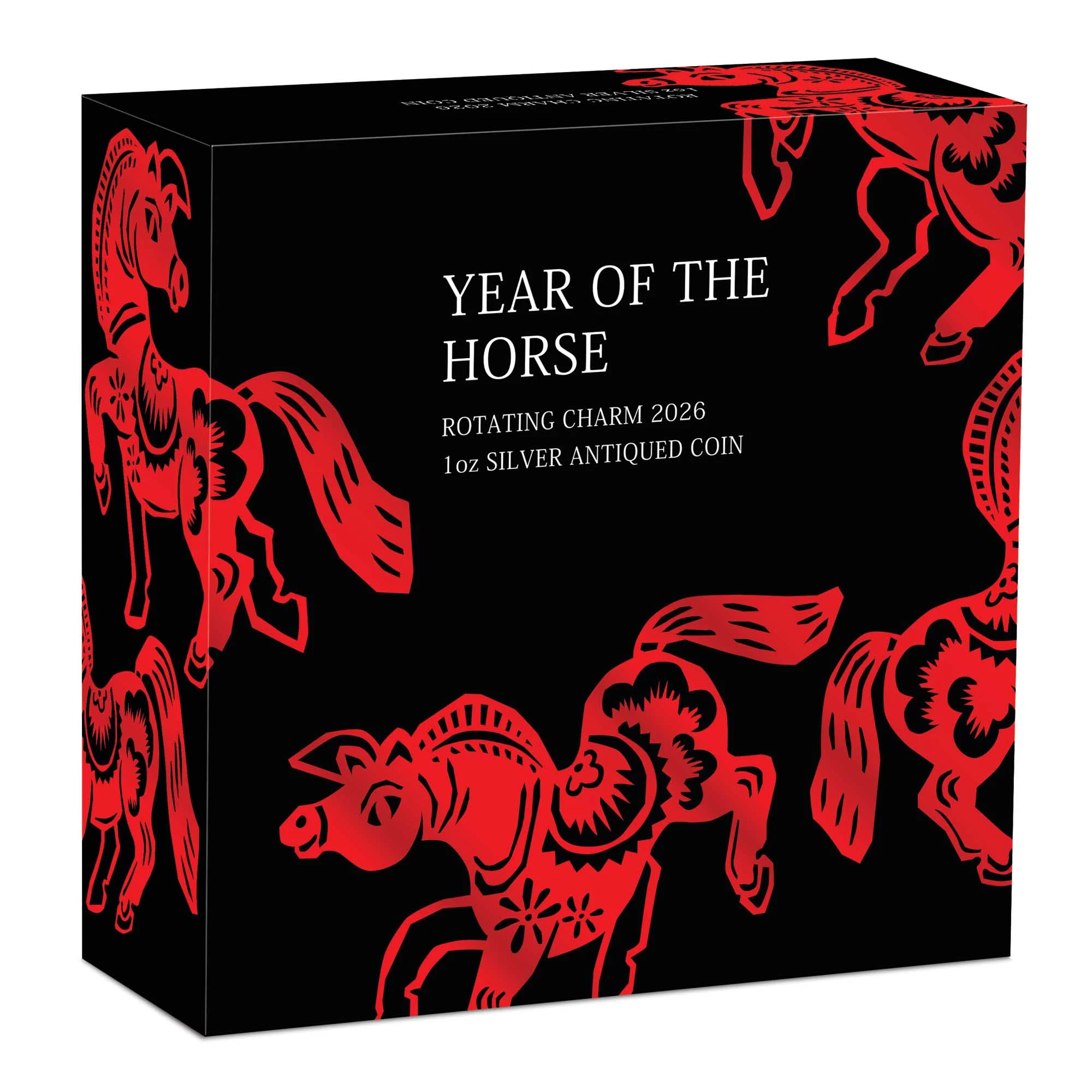 Startseite » MÜNZEN » Internationale Münzen » Tuvalu » 1 Unze Silbermünze Tuvalu 2026 Rotating Charm in Antique Finish | Lunar Serie - Motiv: YEAR OF THE HORSE ( Pferd )