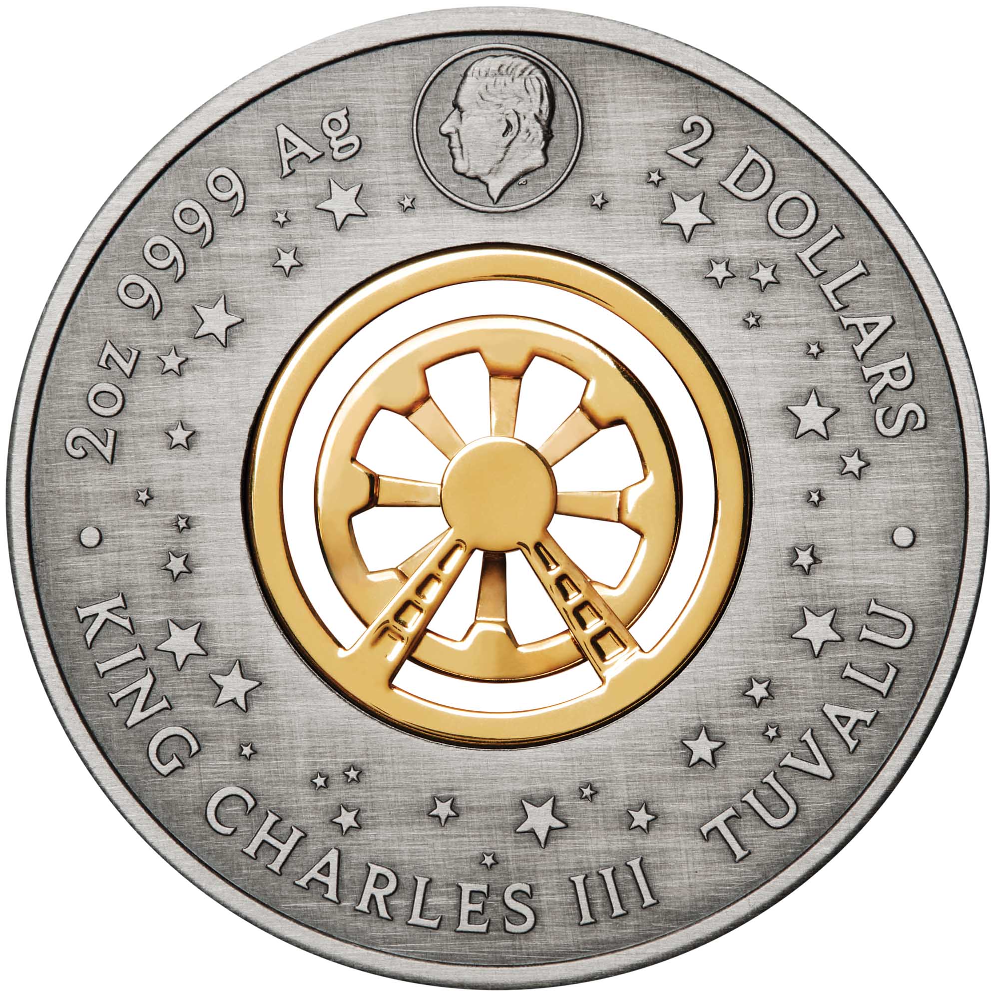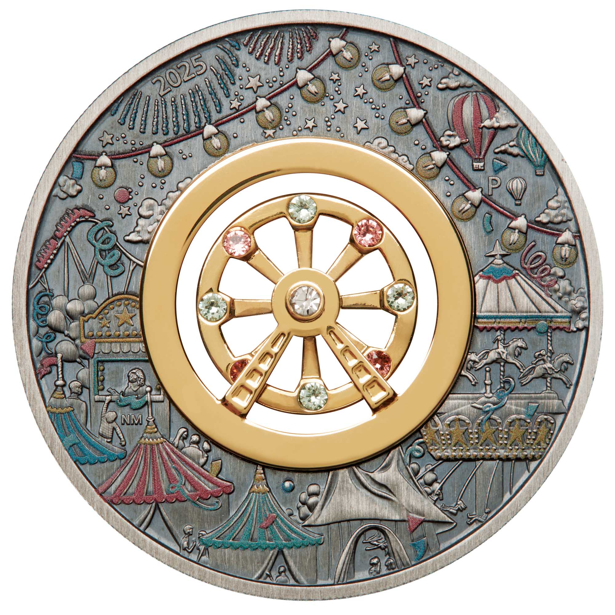 2 Unze Silbermünze Tuvalu 2025 mit Farbe veredelt in Antique Finish | MOTIV: Ferris Wheel ( Perth Mint )