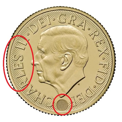 - Mikrogravur im Münzrand auf der Vorderseite: Nur unter starker Vergrößerung sichtbar – ein hochpräzises Anti-Fälschungsmerkmal.